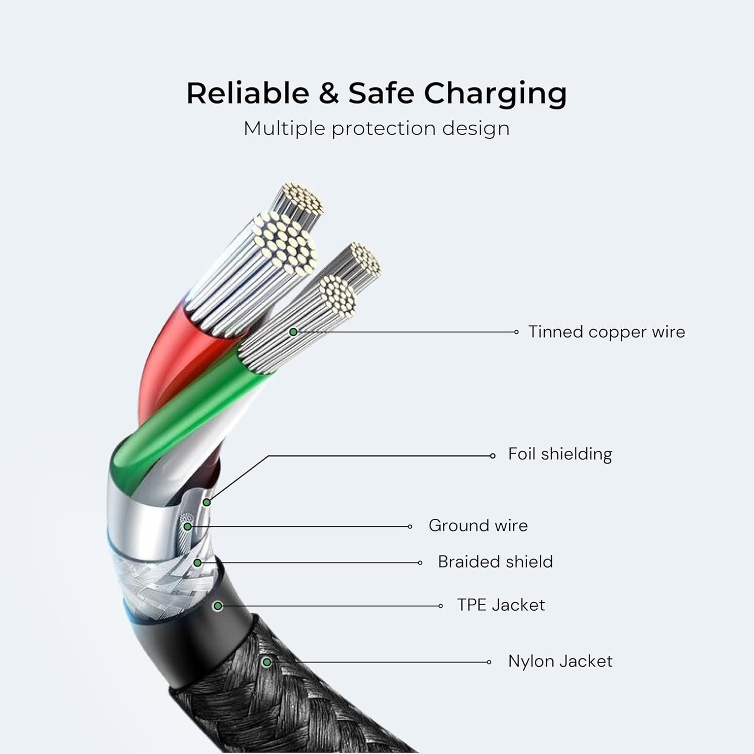 • Flexibility & Durability: 99.9% pure copper core with nylon braided exterior and strain relief provides excellent bend protection and everyday flexibility.